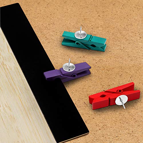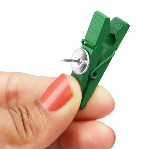 - EASY TO USE TACKS: These tacks are a combination of wooden pegs and push pins. You get the advantages of both in one stationary accessory. Thumb tacks are used to attach notes or paper to a wall or bulletin board. However, you are left with pin holes in the item you are fixing to your surface. With these clips, you can attach your card or paper to a board and no holes will be left in it. You can use these clips to secure photos to a cork board without damaging them.
