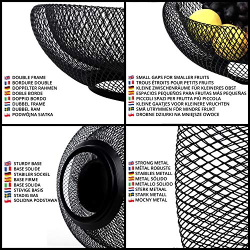 - METAL FRUIT BOWL: This double frame fruit bowl measures 24 x 10cm (9.45 x 3.93 inches). The small gaps between the wire ensure that your small fruits are secure. The basket is made from high-quality metals which makes the basket strong and break-resistance. The metal is finished with a powder coating. We recommend hand washing before use.
