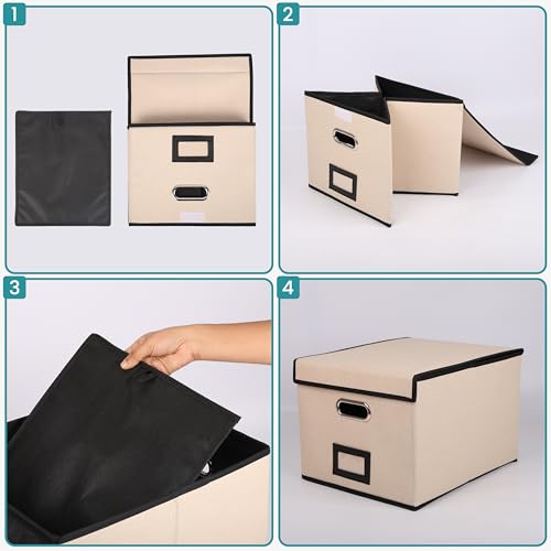 - HIGH-QUALITY FABRIC: This file organiser box is made from durable cardboard with a non-woven fabric covering. The filing cabinet box won't easily deform and has a strong load-bearing capacity. Additionally, the lid features a fastener to protect your files from dust, dirt and contamination.