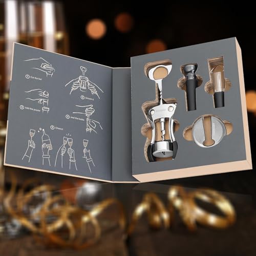 - Perfect Gift Set – The wine opener set includes 4 pcs- A wing corkscrew, foil cutter, pourer, aerator, and wine stopper. The all-in-one wine gift set is packaged in an elegant box, making this set a perfect gift for any wine lover