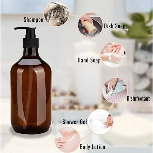 - 【Package Includes】4 x 500ml/17oz pump bottle dispenser, 2 x foldable funnels, and 1 x label paper. Amber soap dispenser is retro and fashionable, suitable for various home styles, meanwhile, it can effectively block UV rays and protect the soap ingredients from photolysis.