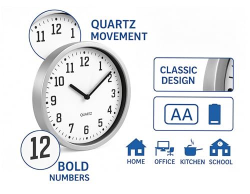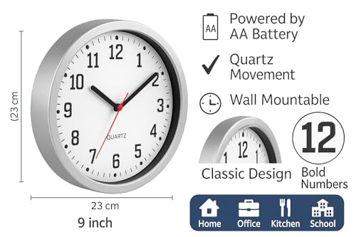- 🕘 Silent Non Ticking Modern Quartz 9"- Battery Operated , Easy Readable Big Numbers.