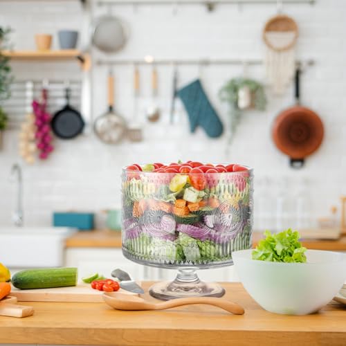 - Romantic Display: Decorated with unique raindrop embossed pattern, the clear glass in pedestal makes a good container for displaying different styles of trifle, showing off every intricate layers of cake, and accenting the delicacy of your salad and fruit