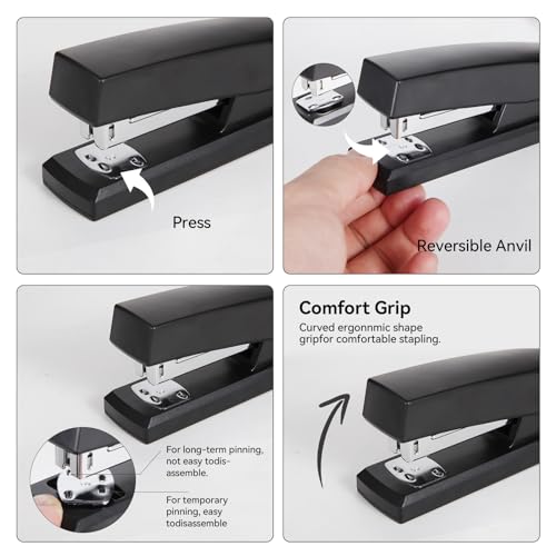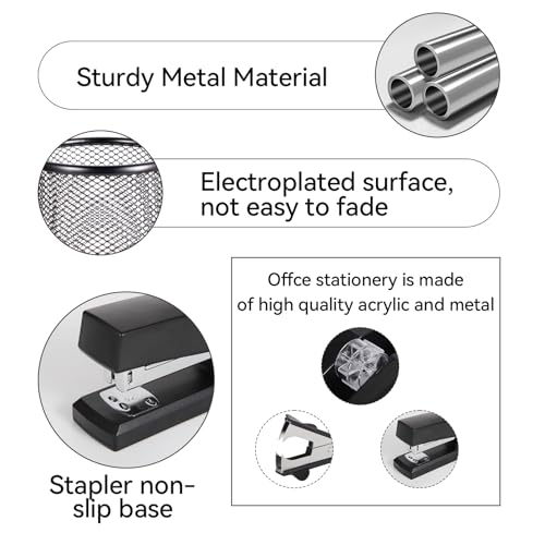 - High Quality Materials:The stapler and tape dispenser set is made of high-quality plastic material, which is reliable, clear and bright, while it has anti-slip pads on the bottom, which is sturdy. Additionally, the binder clip is rust and impact resistant; ideal as a desk organizer and accessory.