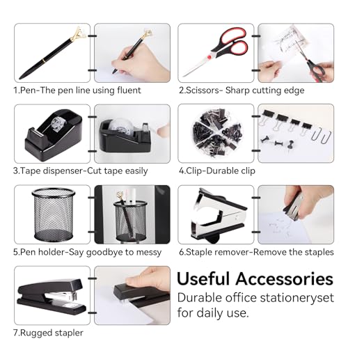 - Wide Application:Black office supplies are suitable for many occasions, such as schools, offices, conference rooms, and travel. A wide range of combination desk supplies can meet your daily office needs. Allowing you to enjoy the relaxation and pleasure brought by the unified colors in your works.