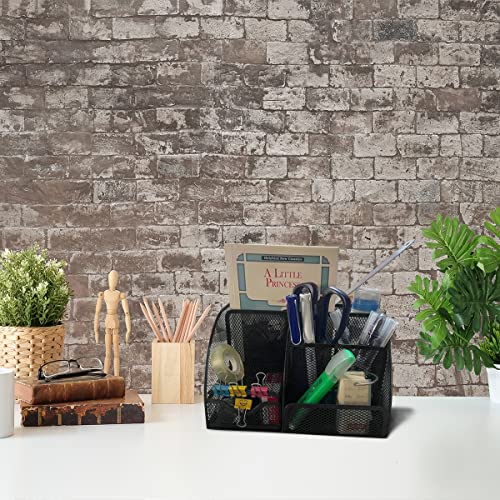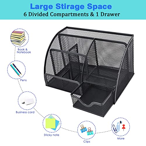 - Black Mesh Desk Tidy & Pen Holder with 6 Compartments and 1 Drawer, Stationery Organisers for Home, Office, School, Classroom, Workshop