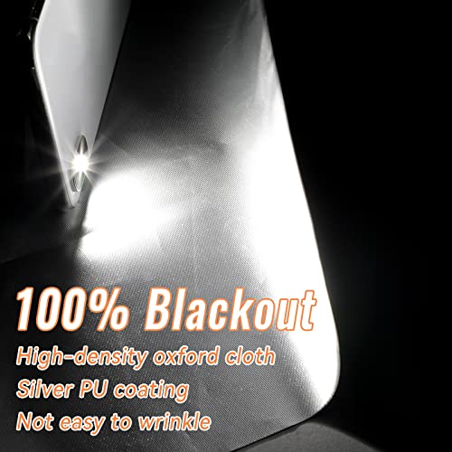 - 【Total Blackout Binds】- The blackout material is made of strong and soft 420D high-density Oxford cloth. The grey fabric on the front and the silver-plated reflective back are great for stopping the suns glare and heat.Turn day into night and let you sleep sweetly