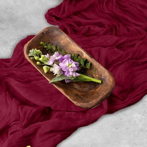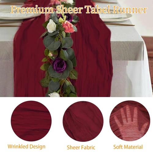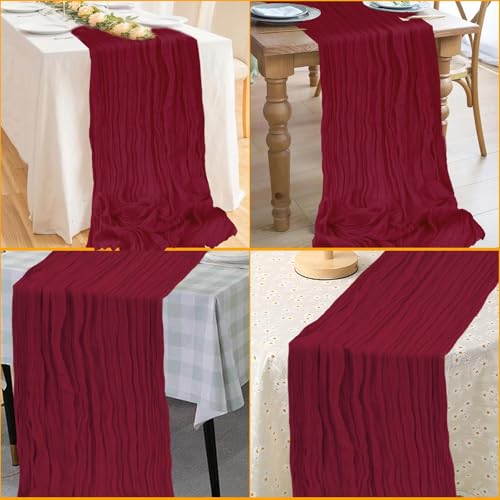 - 【Rustic Table Runner】The burgundy red cheesecloth is delicate and flowy, comes with romantic style. Rustic table runner with wrinkled texture gracefully across your table, bringing a subtle touch of elegance along with it.