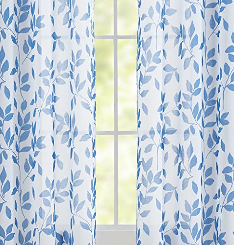 - LEAF PRINT SHEER CURTAINS: 50" w x 54" /panel, 100" w x 54" /pair, Navy Blue leaves printed on the white sheer curtains, Featuring high-end subtle texture background fabric. These eyelet voile curtain panels are perfect for reserving that extra bit of privacy.
