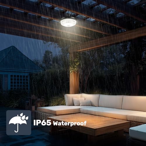 - 【Easy Installation, Versatile Use】- This solar shed light is easy to install, just fix the solar panel outdoors with the included screws and hang the chandelier where you need it.IP65 waterproof design is suitable for any outdoor or indoor space, no wiring required! Ideal for sheds, gazebos, garages, barns, basements, patios, storage rooms and more. (For first time use, please charge it under the sunlight for 5-6 hours, turn on the power button after fully charged and ready to use.)