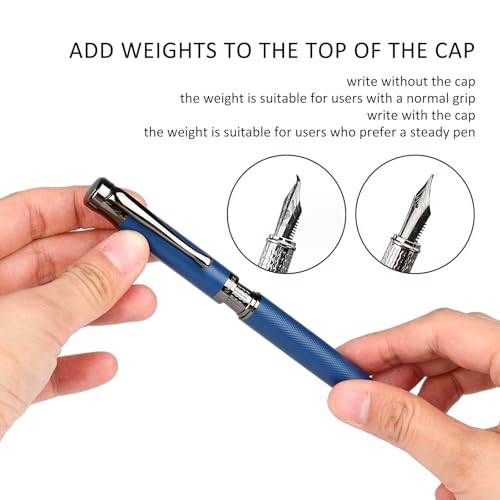 - MORE NEEDS MET -Our writing pens has unique weighted pen cap design can provide you with a better pressing feel when you need professional writing, making writing more precise and perfect.When you need easy daily writing,removing the pen cap will make it light and easy to write for a long time.And equipped with two types of ink absorbers:pull-out and rotary,to meet the needs of more customers.