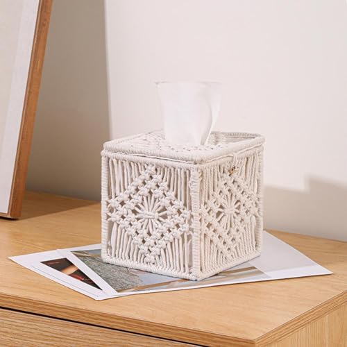 - Distinctive and Versatile Style: Designed in a bohemian style following aesthetic principles, our tissue box holder is a unique addition to any room. The solid color of this boho room decor can effortlessly blend with various room decoration styles, adding a touch of fashion and charm. Whether your decor is modern, coastal, or rustic, the simple beige tones of the boho tissue box cover will complement it seamlessly, enhancing the overall ambiance of your space.