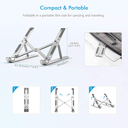- 【Adjustable in 6-levels】The portable laptop stand provides 6 levels of height adjustment, you can adjust the height according to your needs. The ergonomic design will give you comfortable watching and typing, which also helps reduce stiff back and neck.
