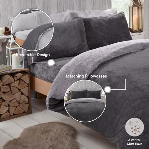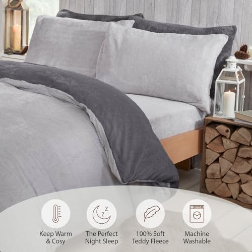 - Luxury plush teddy fleece super soft reversible Sherpa duvet cover with pillow case thermal warm bedding set from the Brentfords range