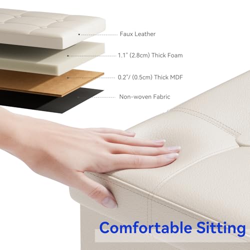 - 【Classic Decorative Appearance】A high-quality faux leather material covers the ottoman, easy to wipe clean with damp cloth; Comfortable sponge inside; button-tufted bench top with double stitching lines brings style to your room.