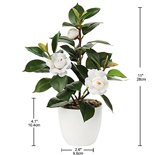 - 【Delicate Camellia Fake Plants】There are 6 types of faux plants in pot for choice to meet your different needs. Overall height of these small potted plants is about 11”/28cm, ideal for displaying on the tabletop.
