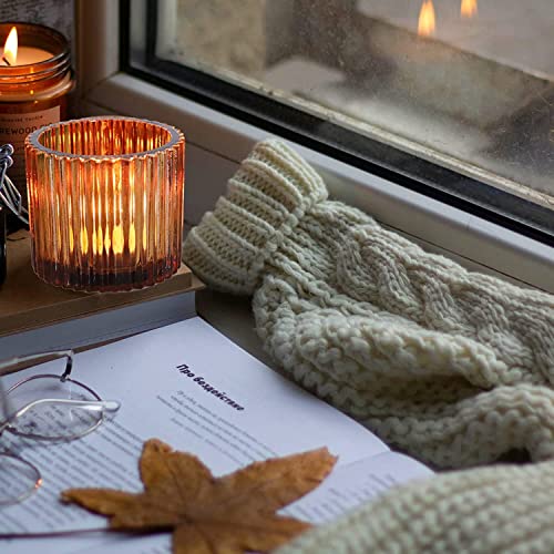 - Adorable Gift Wished Choice on Holiday: the tealight holder is tall, unique look with fluted design, also fits to outside use for small hurricane candles less than 2.5 inches. The votive holders sparkles Fall amber lights which matches to the romantic ambiance