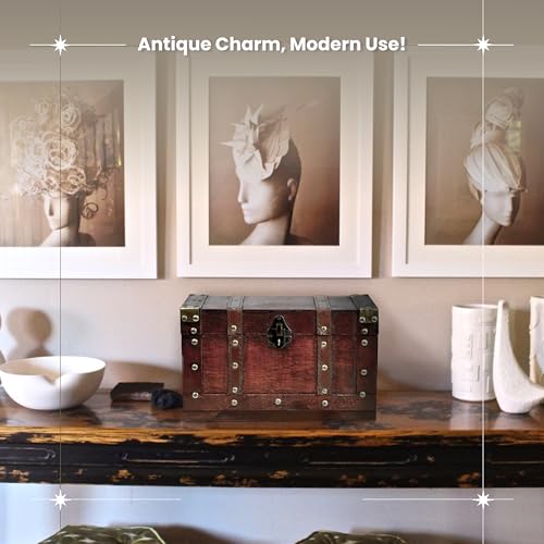 Home decoration – The antiquely designed wooden box is ideal for a decorative and fancy storage of all kinds of personal treasures to elevate your place's decoration. External dimensions: 11x6x7x6x3inch
