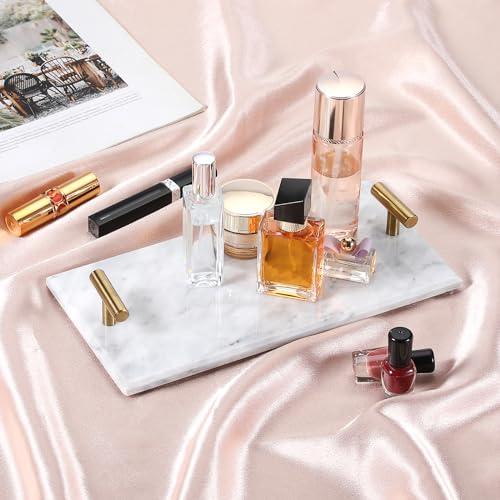 - Great Decoration: Marble countertop tray shows elegance and high level, which compatibles with various types of countertops. Suitable for placing in the bedroom, living room, bathroom, kitchen, restaurant, coffee shop, hotel, etc.