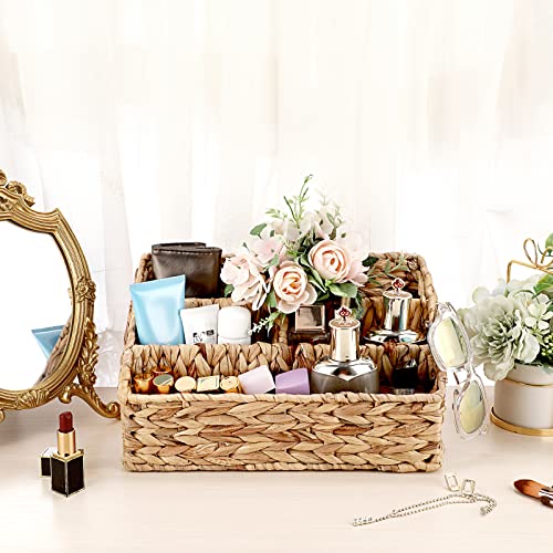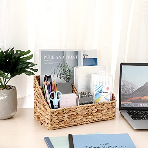 - Compartment Design: Our woven desk organizer comes with 4 compartments that you can manage desktop items by category. The trapezoid design makes items easy to be seen and found from low to high, saving time.