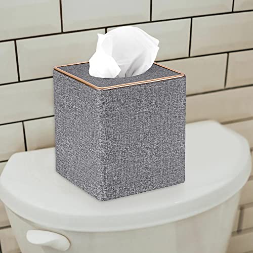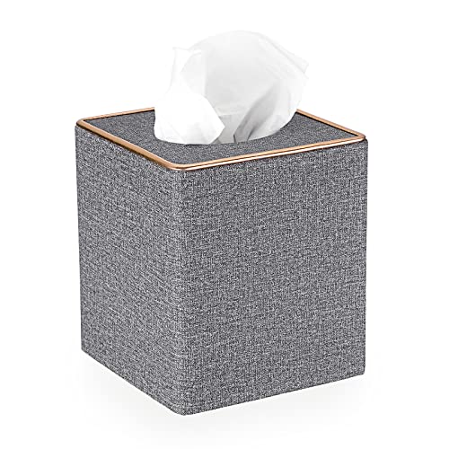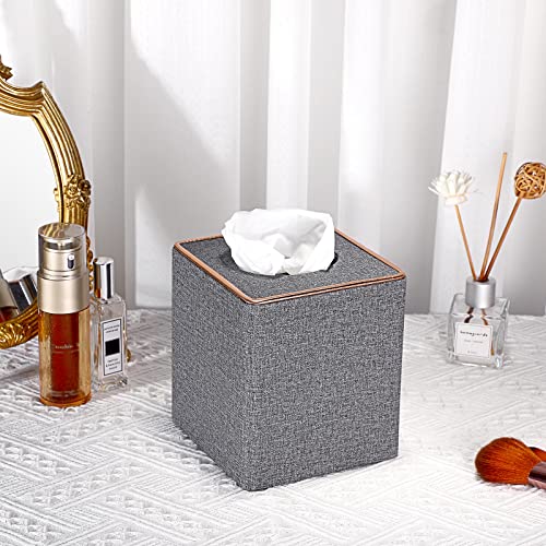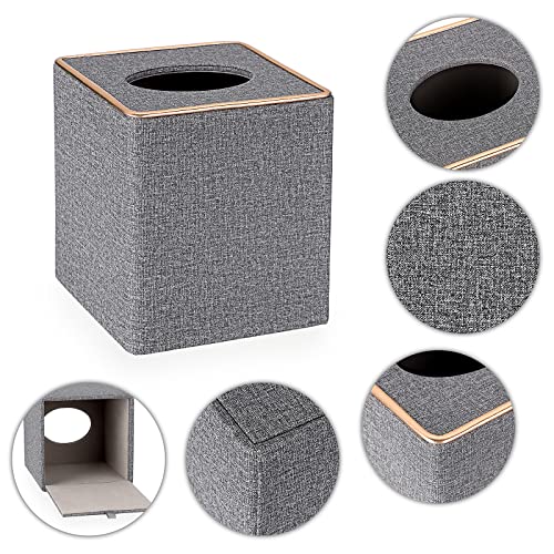 BTSKY Household Square Linen Tissue Box with Decorative Gold Line – Cube Tissue Paper Holder Tissue Cover Holder Tissue Storage Organizer Tissue Dispenser Case Napkin Box, Grey