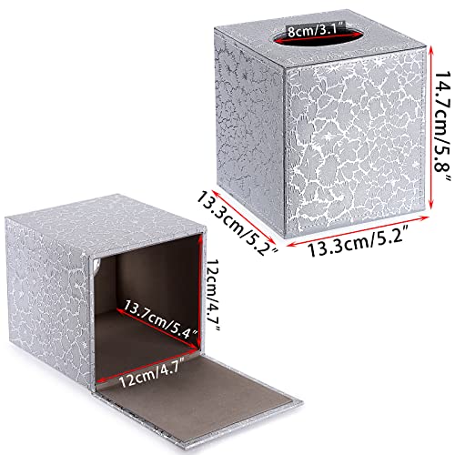 - Suitable Size — This tissue holder's size is13.2*13.2*14.6cm(L*W*H) and the inner size is 12*12*13cm(L*W*H). It is suitable for most regular size tissues. The 7.5*5.5cm(L*W) open lip on the top for easily put out of the tissue