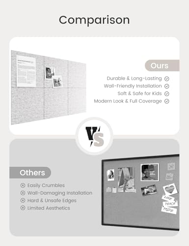 - 【Felt Bulletin Board – 6 Tiles Included】 Includes 6 felt cork boards (each 11.8" x 11.8") that can be freely arranged into a large display board. Perfect for showcasing your schedules, ideas, and creations in home or office settings.
