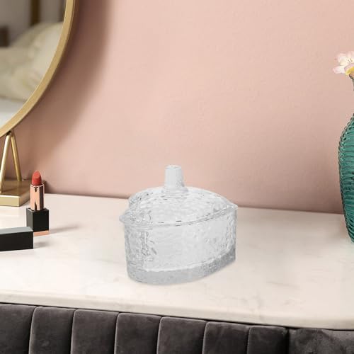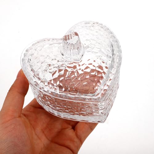 - A Heart Shaped Treasure Chest Box – Crystal glass candy jar with lid, heart decorative jar glass storage bathroom jars jewelry box canister jar for cotton swab glass jar for kitchen bathroom pantry.