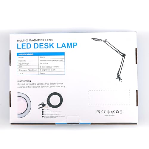 - 【 USB Port Design 】 LED magnifier lamp comes with a 2m USB charging cable, which can be connected to any available USB Port, such as a USB charger, USB power bank or powered laptop. You no longer have to worry about the distance between the lamp and the electrical outlet.