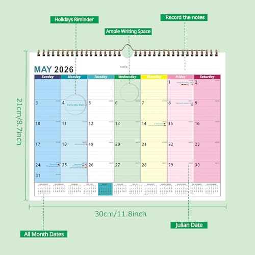 - 【Durable and practical material】This wall calendar uses A4 size, 160g anti-bleeding paper and a sturdy double coil design to prevent your writing from bleeding ink and keep your calendar neat and clear all year round.