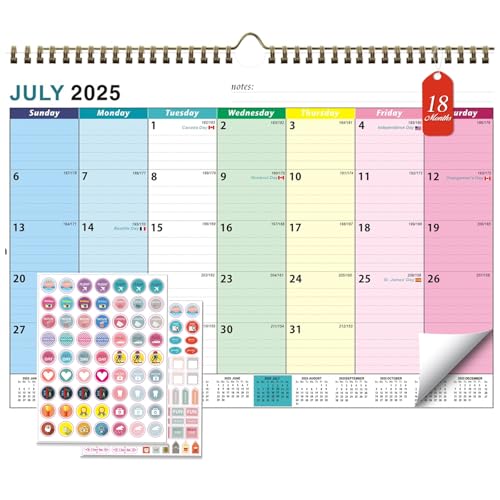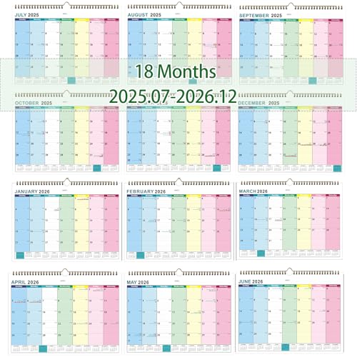 - 【18-month design】This rainbow-themed wall calendar covers 18 months (July 2025-December 2026), equipped with a highlight current date function and a convenient small calendar reminder. Each small grid has horizontal lines to make your writing plan clear, which is very suitable for school years, financial planning, family organization and long-term goals.