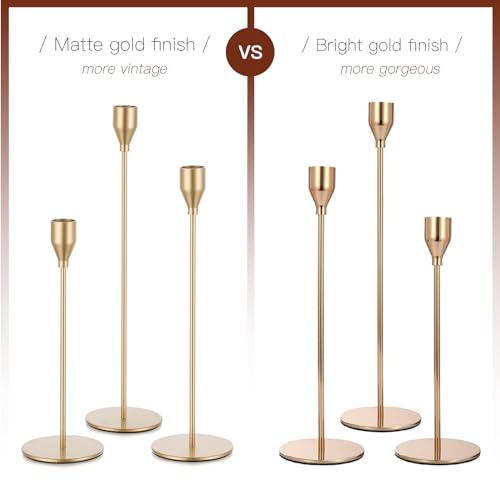 - Robust and stable – The matte gold colour surface of the candlestick holders is carefully painted for durability and not easily rusted. The base metal of the candle holder is strong and sturdy, which is stable on the table and won't tip over easily.