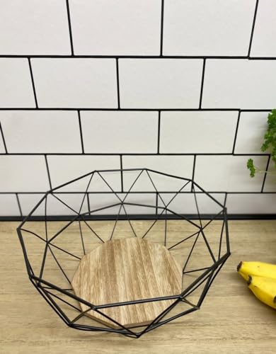 - An attractive large fruit bowl made from black metal and wood. Great for displaying fruit or serving bread in with a serviette. Would look lovely in any room in your home