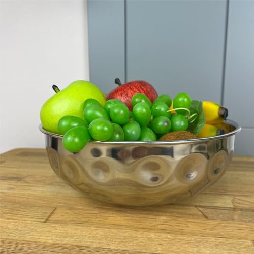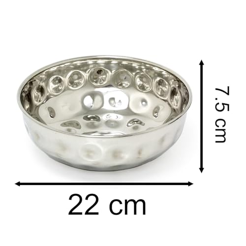 Carousel Home Stainless Steel Kitchen Fruit Bowl | Round Silver Display Bowl with Hammered Detail | Multi-Purpose Serving Bowl Salad Bowl Decorative Bowl – 22cm