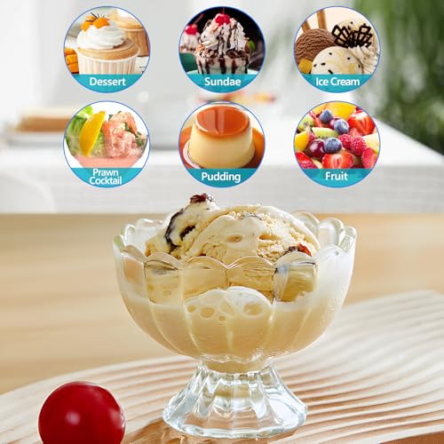 - 6Pcs Dessert Glasses : This set of 6 sleek ice cream bowls (9.5×7.5×5.5cm, 150ml each) is ideal for serving sundae or elegant trifles. The crystal clear stable pedestal design showcases treats beautifully, perfect for family gatherings or stylish entertaining