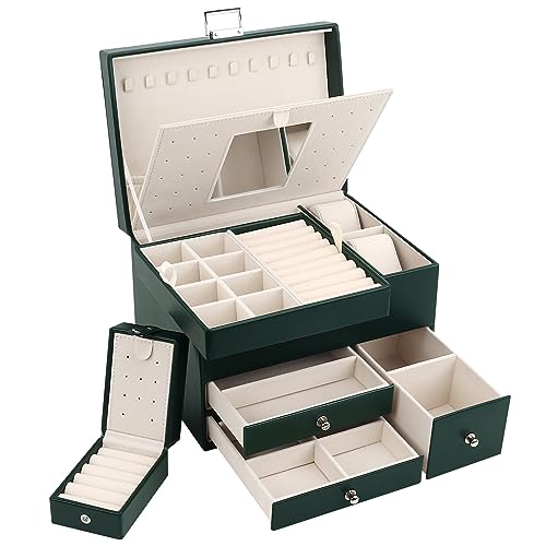 - ❤【Separate Travel Jewellery Case】: This jewellery organiser comes with a mini travel jewellery box in the bottom right drawer, which is perfect for bringing a couple of pieces on your trip or vacation.There is also a stud plate and a ring slot in the small jewelry box. Moreover, there is also an independent space behind the ear stud plate for some small jewelry.