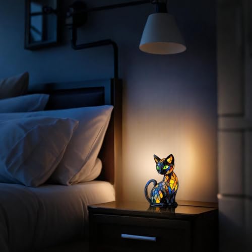- Stained Glass Lamp Shades: Our table lamps harmoniously blend vintage style with modern style, which is both a functional light source and an eye-catching work of art. Experience the warm, nostalgic vibe stain glass cat lamp brings to your décor.