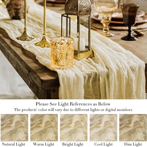 - PREMIUM MATERIAL: This rustic sheer table runner is made from high quality gauze fabric with exquisite wrinkled texture and delicately finished edges. It is soft while also being durable, romantic, and flowy. Lightweight and sheer gauze fabric matched with crafted beautiful pleats adds gorgeous and dreamy atmosphere to any event decorations.