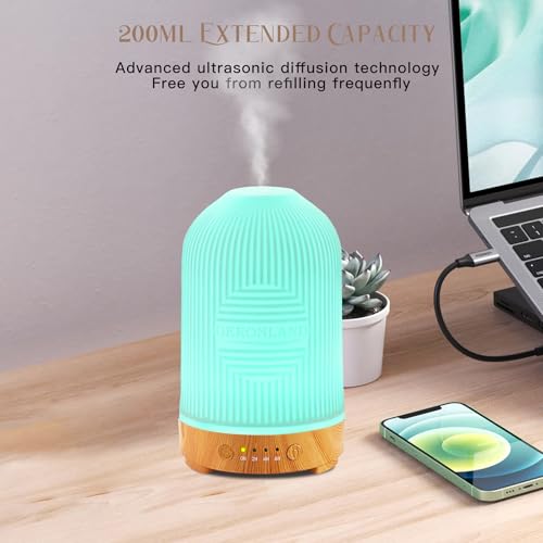 - BPA-Free and Whisper: Ultrasonic technology diffuser humidifier operates silently, allowing you to enjoy the fragrance without any disruptive noise. Whether you use it during work, meditation or sleep, 200ml (work for 6.5-9.5 hrs) water capacity giving your home a fresh, fragrant scent, gently humidify the air and eliminate dust and allergens, relieve stress, and revel in deep relaxation.
