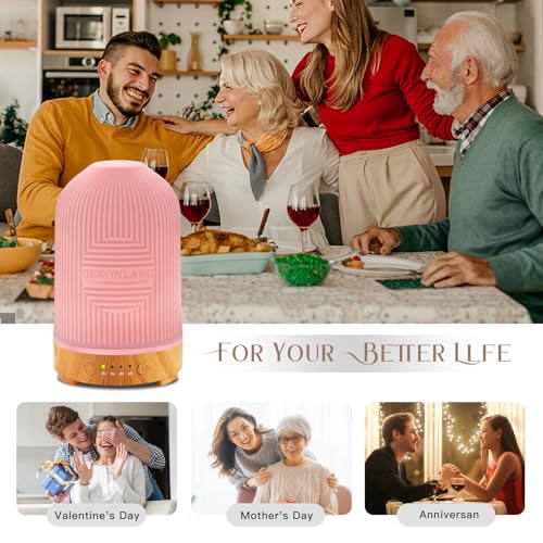 - Unique Ceramic Design: White ceramic cover, classic vertical stripes, make the essential oil diffuser look modern elegant but delicate. Classic wood-grain patterned base is a great way to show off your taste and style. with the aromas of your favourite essential oils, it softly streams essential oil-infused steam out into your space, lending your interior spaces a sense of luxurious comfort.