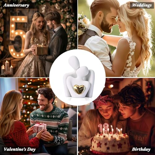 - 【Romantic Home Accent for Couples】Designed as emotional anchors for your living space, these white ornaments embody love and intimacy through their artistic representation of a hugging couple. The romantic sculpture features a shining gold heart at its center, symbolizing a bright and precious bond between partners. These anniversary gifts for couple create a cohesive and stylish atmosphere, serving as meaningful decorative pieces that celebrate relationships and add warmth to any home environment, particularly as cherished living room ornaments.