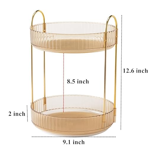 - 【Widely Used】:The turntable organizer can create extra storage space in kitchen counter, bathroom vanity counter, study table, dressing table, office table, cabinet and other places to be bathroom counter organizer, dresser organizer countertop, skin care organizer, kitchen spice racks. You can use the two trays separately or assemble them for use.