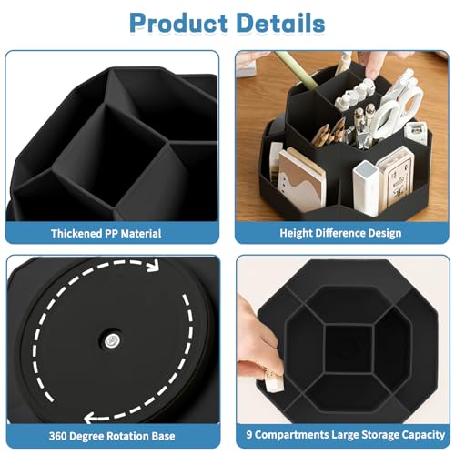 - 【360° Rotating Pen Holder】 Ceysin desk organiser can be rotated 360°, the high-quality roulette at the bottom makes the rotation very smooth and stable. You can rotate desk organiser to any angle to easily store or take out what you want, keeping everything within reach, keep your desktop clean and organized.