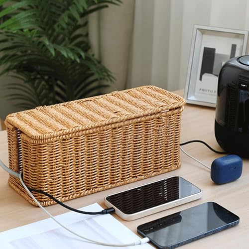 - CONVENIENT PERFORMANCE Keep your home and workspace tidy with this rattan animated cable management box. Thanks to its practical design, you can hide cables, power strips and USB hubs under desks and TV cabinets for effortless organisation. Say goodbye to messy cables and welcome space saving elegance