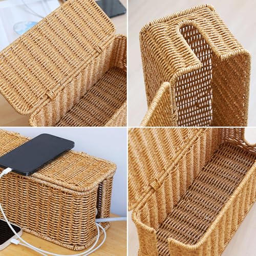 - ADDS A TOUCH OF ELEGANCE Enjoy a safe and organized cable space with our cable management box, which features unique hand-woven rattan animation patterns with good breathability and high safety standards. With 2 open wire grooves and unique weaving art, this ensures efficient cable organization