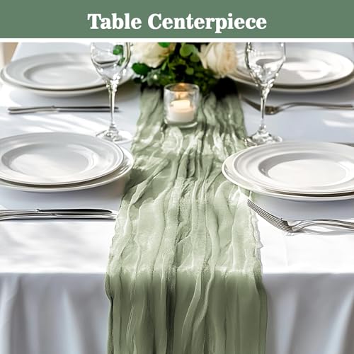 - Maintainance & Service: Tablescarfs need to be hand washed or machine washed in a laundry bag. Do not bleach or iron. Ironing will cause wrinkles to appear. Package contains a stylish sage green Cheesecloth Table Runner measuring approx. 120 inch/ 300cm long and 35 inch/ 90cm wide, which is large enough for most occasions. If you are not satisfied with our products, please contact us at any time, we will do our best to solve it.