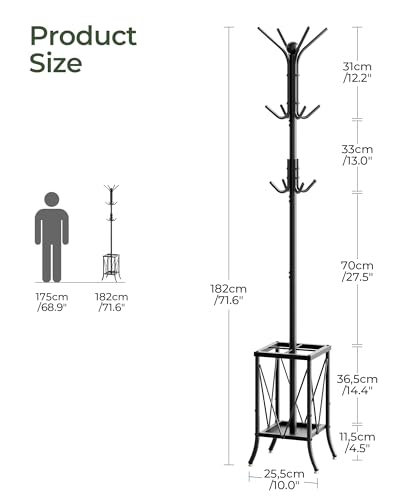 - Elegant and Minimalist Design: Measuring 25.5 x 25.5 x 182 cm, this coat hanger stand boasts a classic black finish with a stylish, textured design. Perfect for an entrance to hang coats, bags, scarves, and hats, making it easy to grab items on the go