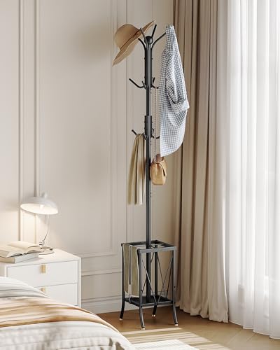 - Umbrella Stand with Tray: An umbrella holder is designed below the metal coat rack for storing long-handled umbrellas. The bottom tray catches raindrops, prevents rainwater from dripping on the floor, and keeps your entrance area tidy