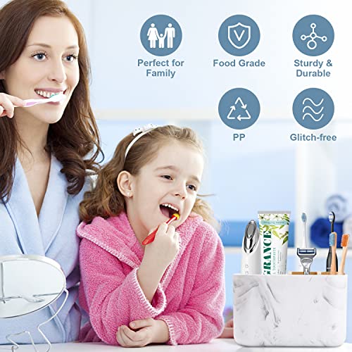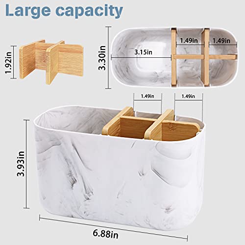 - 🪥【Natural and ECO-Friendly】The tooth brush holder is made of marble powder with bamboo divider,which is evironmental friendly and healthy. We add paint layers to the bamboo divider, which gives you long lasting durability