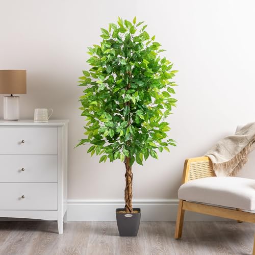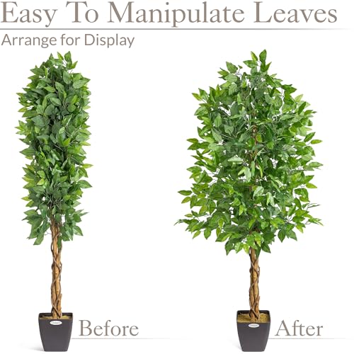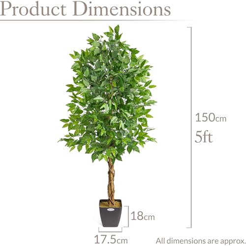 - 5FT LIFELIKE GREEN FICUS TREE: Looking to add a splash of natural greenery to your home or office? Look no further than this 5ft (150cm) Artificial Green Ficus Tree. Although it looks every bit as beautiful as a real Ficus tree, it requires no sunlight, water, or pruning. So, even if you lack green fingers, there’s no danger of it dying from neglect.